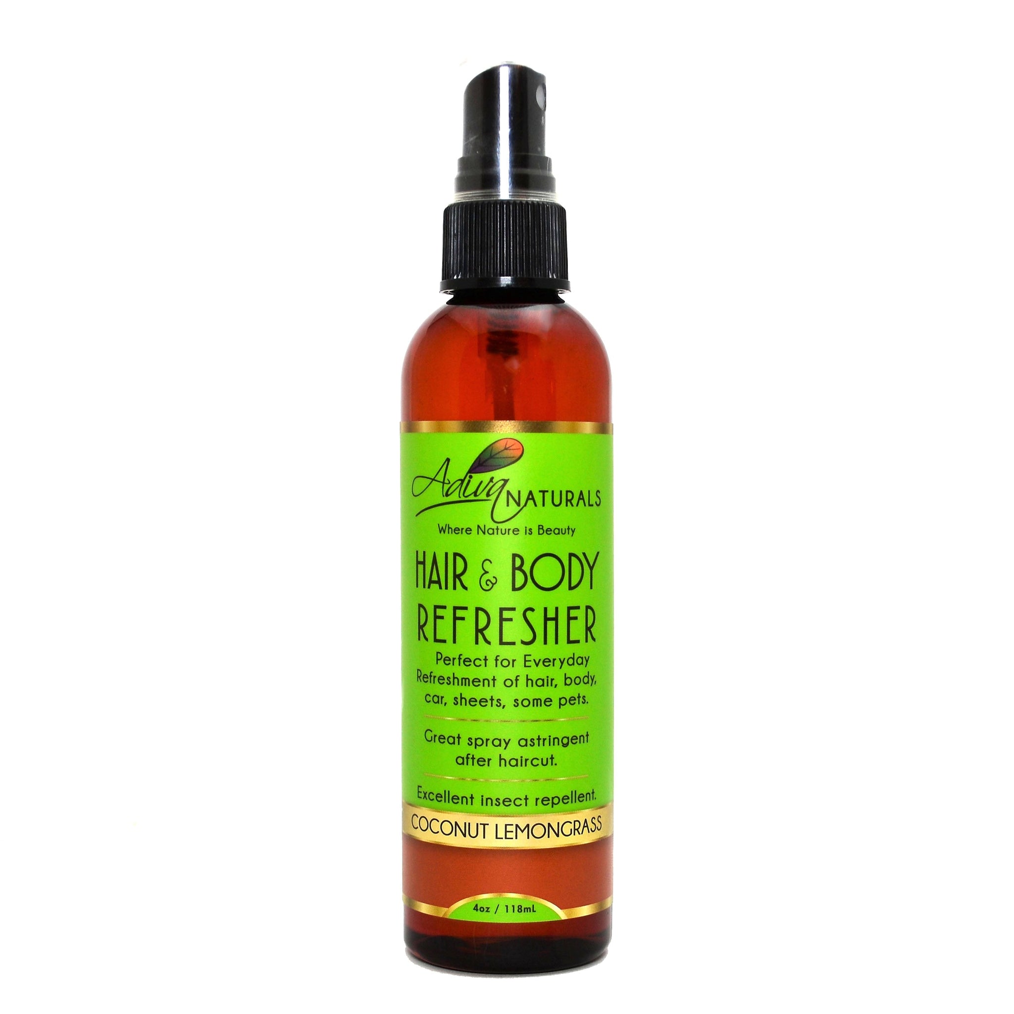 Adiva Naturals Hair & Body Refresher - An Everything Refresher is a unisex, crisp, refreshing essence that will surely entice you and anyone near you to pure invigoration. Perfect for the everyday refreshment of hair, body, car, sheets, and even some pets.