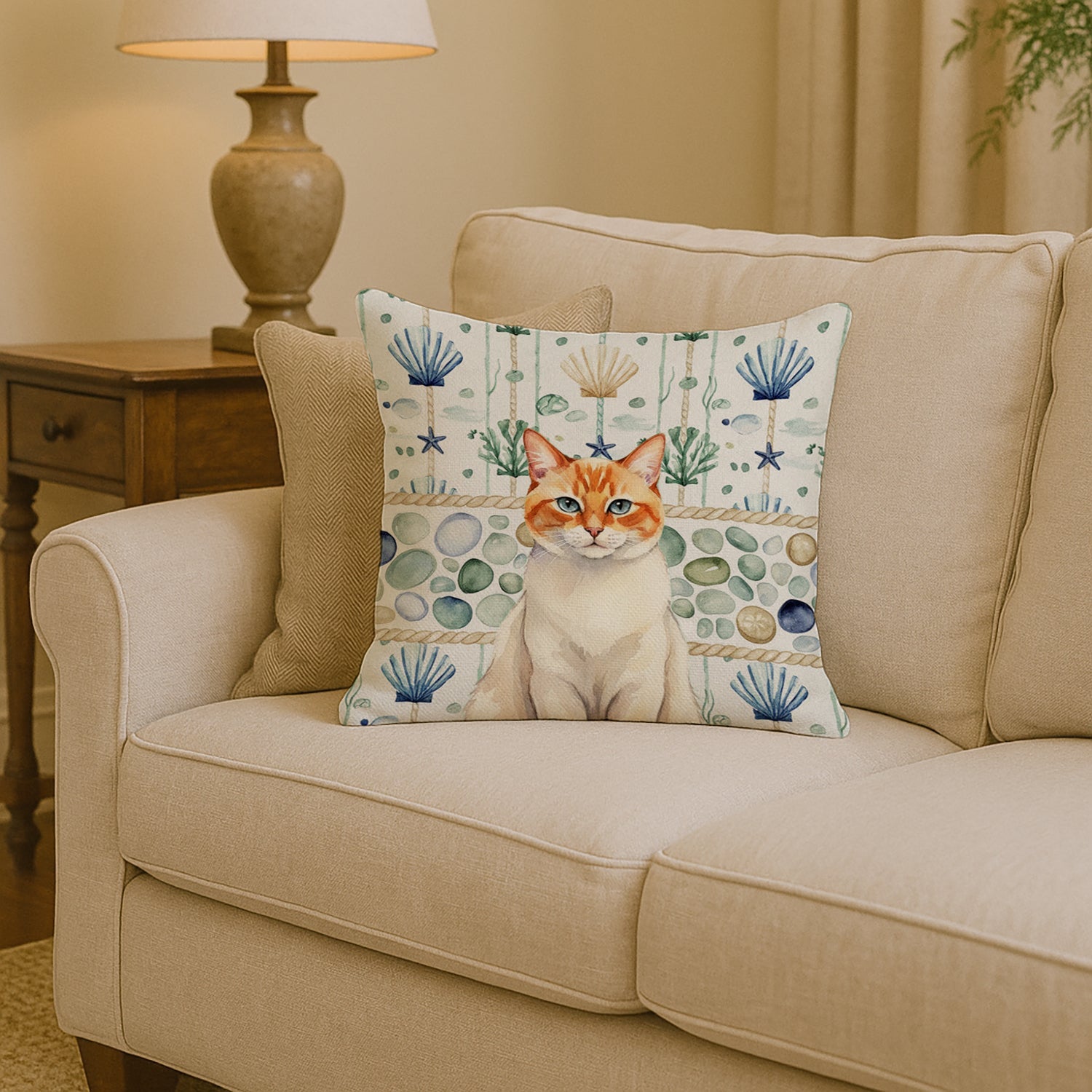Throw Pillow featuring breed specific Flame Point artwork. Add a touch of vibrancy and comfort to your outdoor seating with Caroline's Treasures Fabric Decorative Pillow. Measuring approximately 14 inches by 14 inches, this outdoor pillow is crafted to elevate the appeal of your patio furniture, infusing it with vivid color and artistic flair. The pillow includes a 100% Polyester Fabric sham filled with a quality pillow form to provide superior comfort. Innovatively made from our brand new material, specifically woven for its water resistance, this pillow is designed for durability. The soft canvas fabric offers versatility in use, fit for your indoor couch or your outdoor patio, porch, or veranda. The fabric is dyed with colorfast dyes built for resilience against weather conditions, ensuring the pillow retains its beauty over time. Constructed by sewing three fabric pieces to create a sham, the polyester insert is then nestled inside to form the pillow, resulting in an overstuffed pillow that maintains its shape. Both the sham and the pillow insert are proudly made in the United States. As the pillows are handcrafted, there may be minor variations in size, further enhancing their unique charm. Experience comfort in style with Caroline's Treasures Fabric Decorative Pillow.
