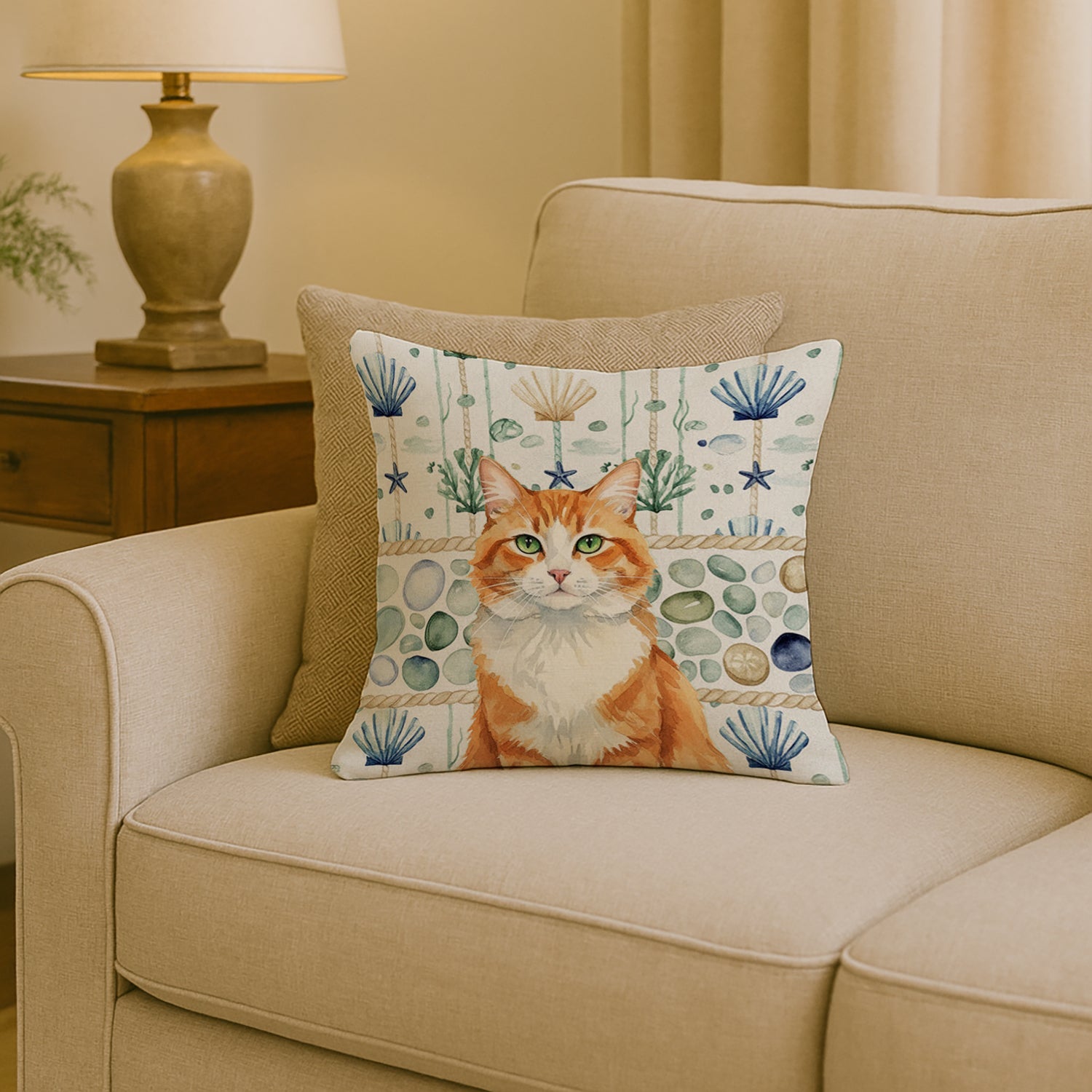 Throw Pillow featuring breed specific Orange and White artwork. Revitalize your outdoor or indoor living space with Caroline's Treasures 18x18 Fabric Decorative Pillow. With a generously sized dimension of approximately 18 inches by 18 inches, this pillow makes a comfortable and aesthetic addition to any seating area. Made from a unique, water-resistant material developed by Caroline's Treasures, the pillow sham is 100% polyester fabric that's durable and ready to weather any condition. Its vibrant, full-color artwork will not fade over time as it is dyed with color-fast dyes. Whether you place it on your patio furniture, porch, veranda, or indoor couch, its soft canvas fabric ensures a cozy experience. The pillow is handcrafted in the United States, featuring a sham created from three pieces of fabric and a polyester insert for enduring shape and overstuffed comfort. Despite being robustly built to endure the outdoors, it is as soft and snug as your favorite indoor cushions. Please note, as all our pillows are handmade, sizes may vary slightly, adding to the charm of this unique decorative item.