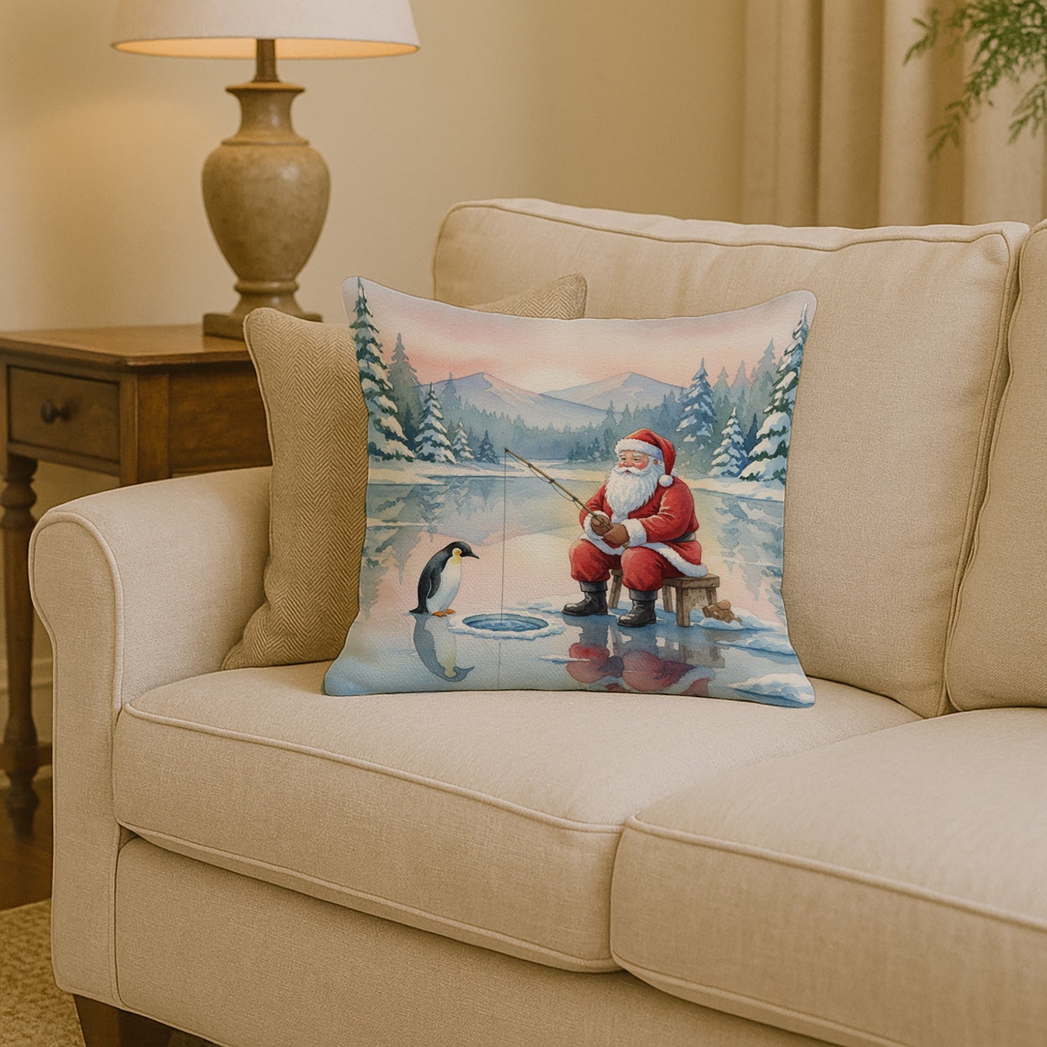 Santa Claus Ice Fishing on the Lake Christmas Throw Pillow