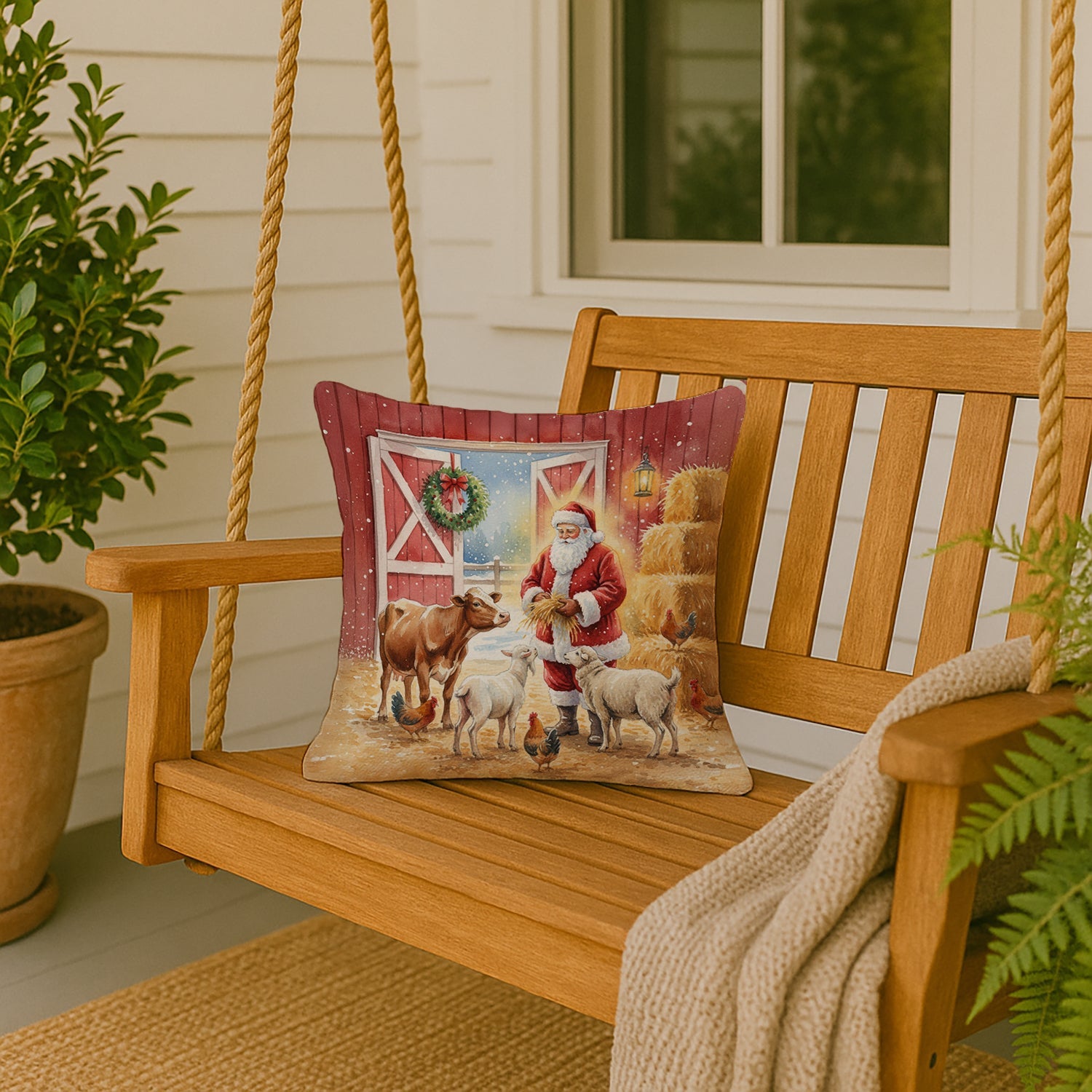 Santa Claus in the Barn with Animals Christmas Throw Pillow