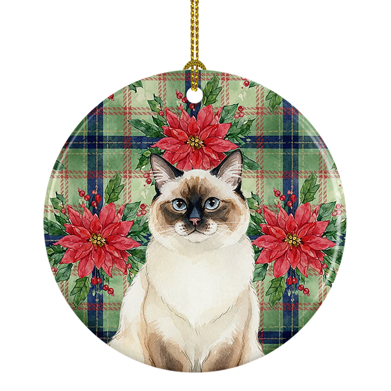 Ceramic Ornament featuring breed specific Ragdoll Seal Point artwork. Celebrate Christmas with this Christmas Ornament. Add a touch of personalized charm to your Christmas tree this holiday season with our Ceramic Ornament. Measuring 2.8125 inches in diameter, this round porcelain ornament beautifully reflects your festive lights, enhancing your holiday decor. The gloss surface sets off the vibrant, full-color artwork contributed by one of our talented artists, bringing a pop of color and joy to your tree. This Ceramic Ornament doesn't stop at being merely decorative. The white back is designed for personalization. Write a heartfelt message, mark a special year, or inscribe a date with a paint pen or a permanent marker to create a treasured memento. Please ensure you allow any personalization to dry thoroughly before handling to maintain the pristine finish. Included with the ornament is a delicate gold cord for easy hanging. Made in the USA, this Ceramic Ornament makes an exceptional gift for a pet sitter, teacher, family member, or anyone you wish to share a little Christmas magic with. With its blend of style, charm, and personal touch, it's a meaningful addition to any Christmas tree.