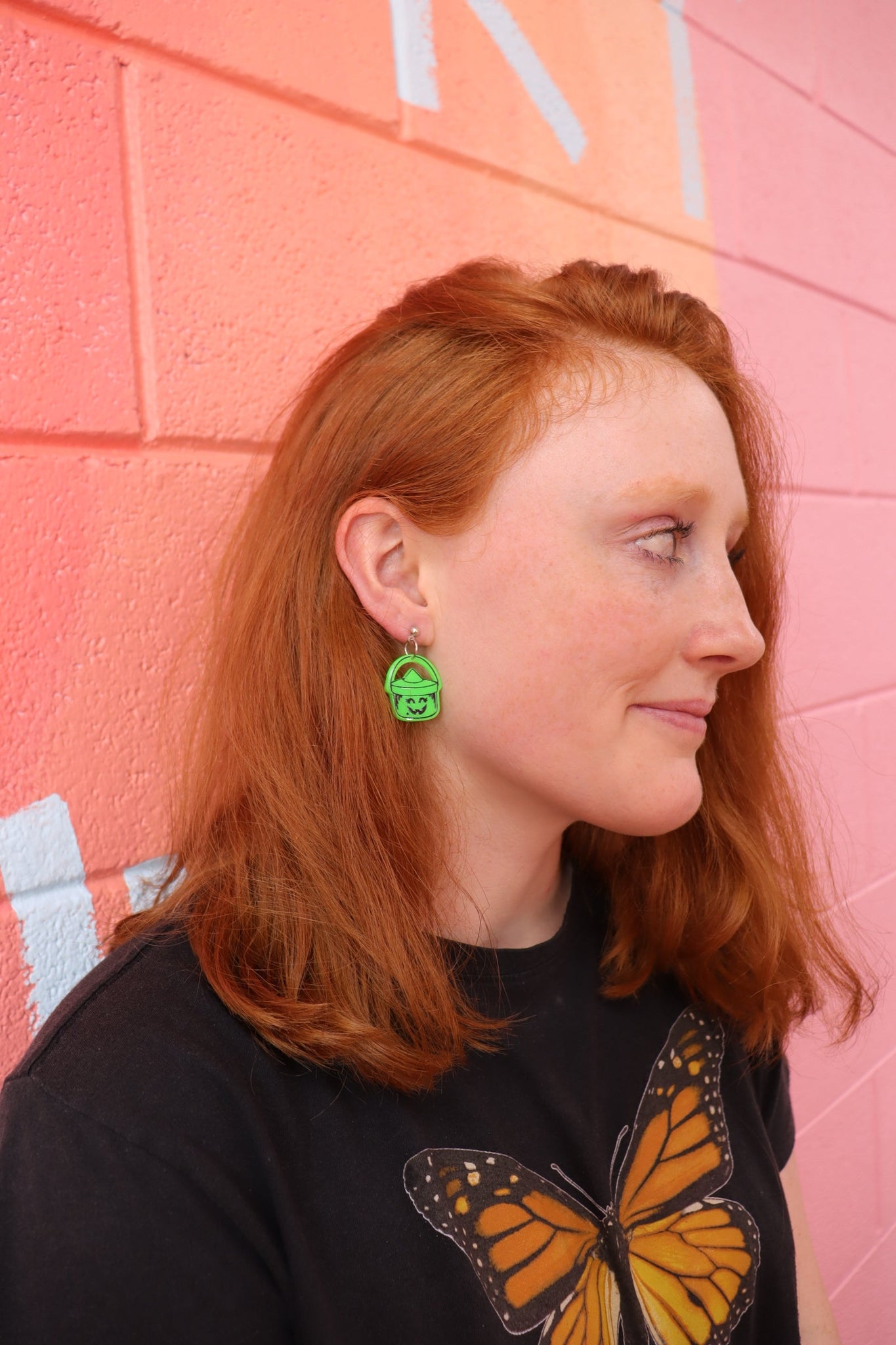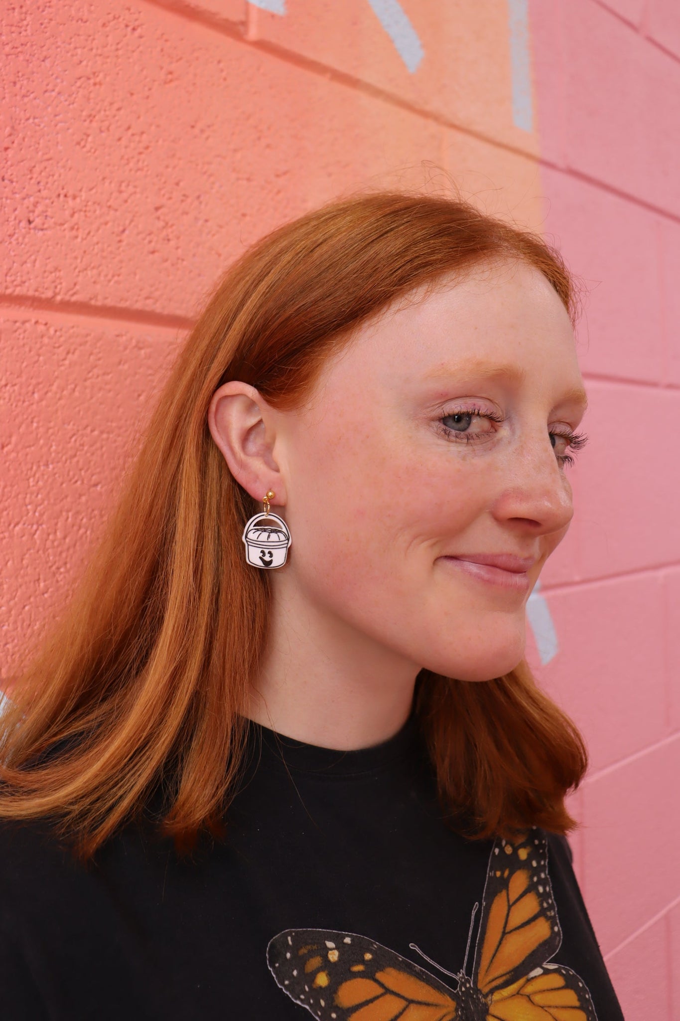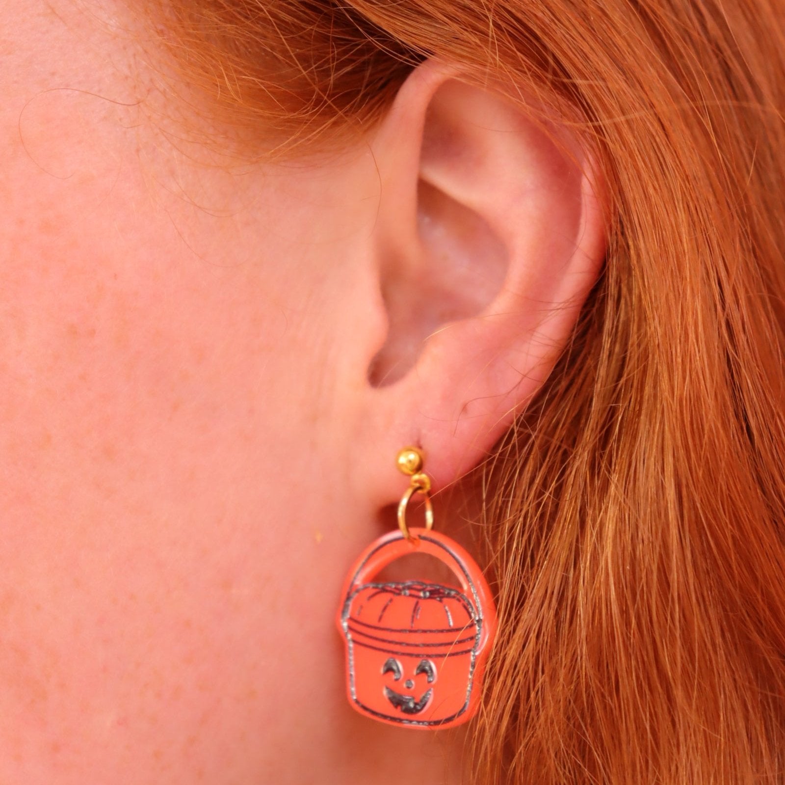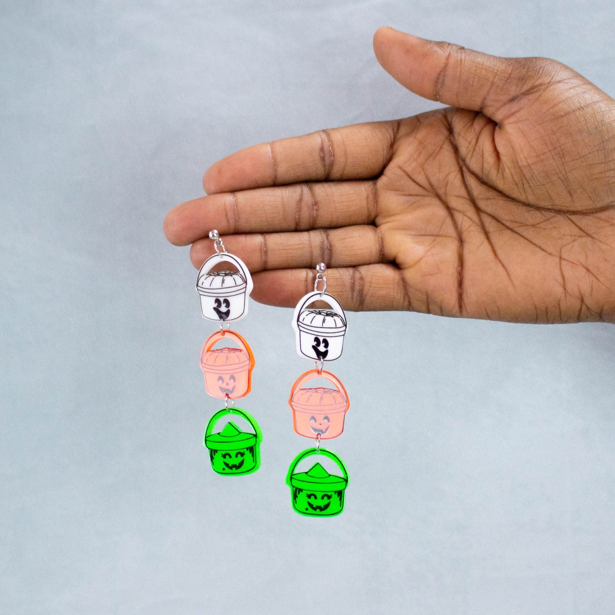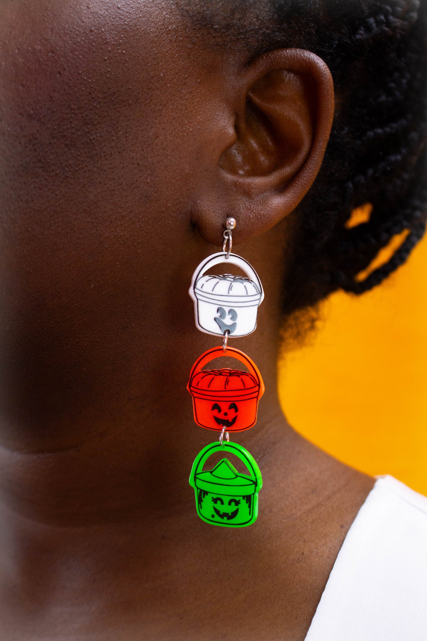 Get your nostalgia on with our Trick or Treat Yo' Self earrings! These Halloween-themed earrings feature mini trick or treat buckets, perfect for reliving your childhood memories. A fun and playful addition to any Halloween outfit!