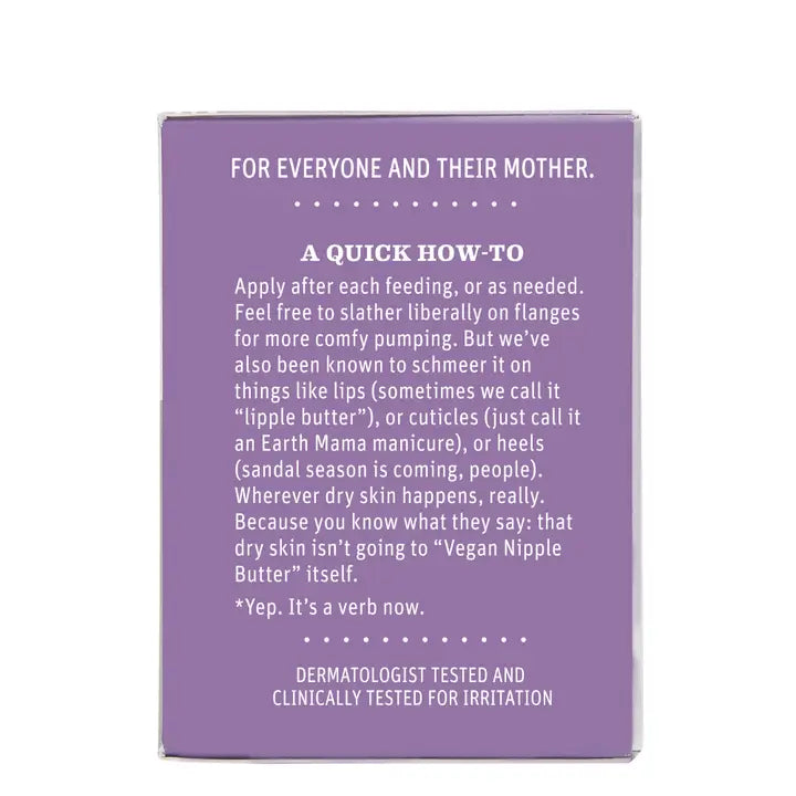 Meet your nipple superhero! Earth Mama Vegan Nipple Butter is a non-sticky, lanolin-free vegan nipple cream that’s Non-GMO Project Verified. This blend of organic calendula and cocoa butter traditionally used to soothe and moisturize dry skin works wonders on sore, cracked nipples and more. That means there’s no need to wash it off before nursing.