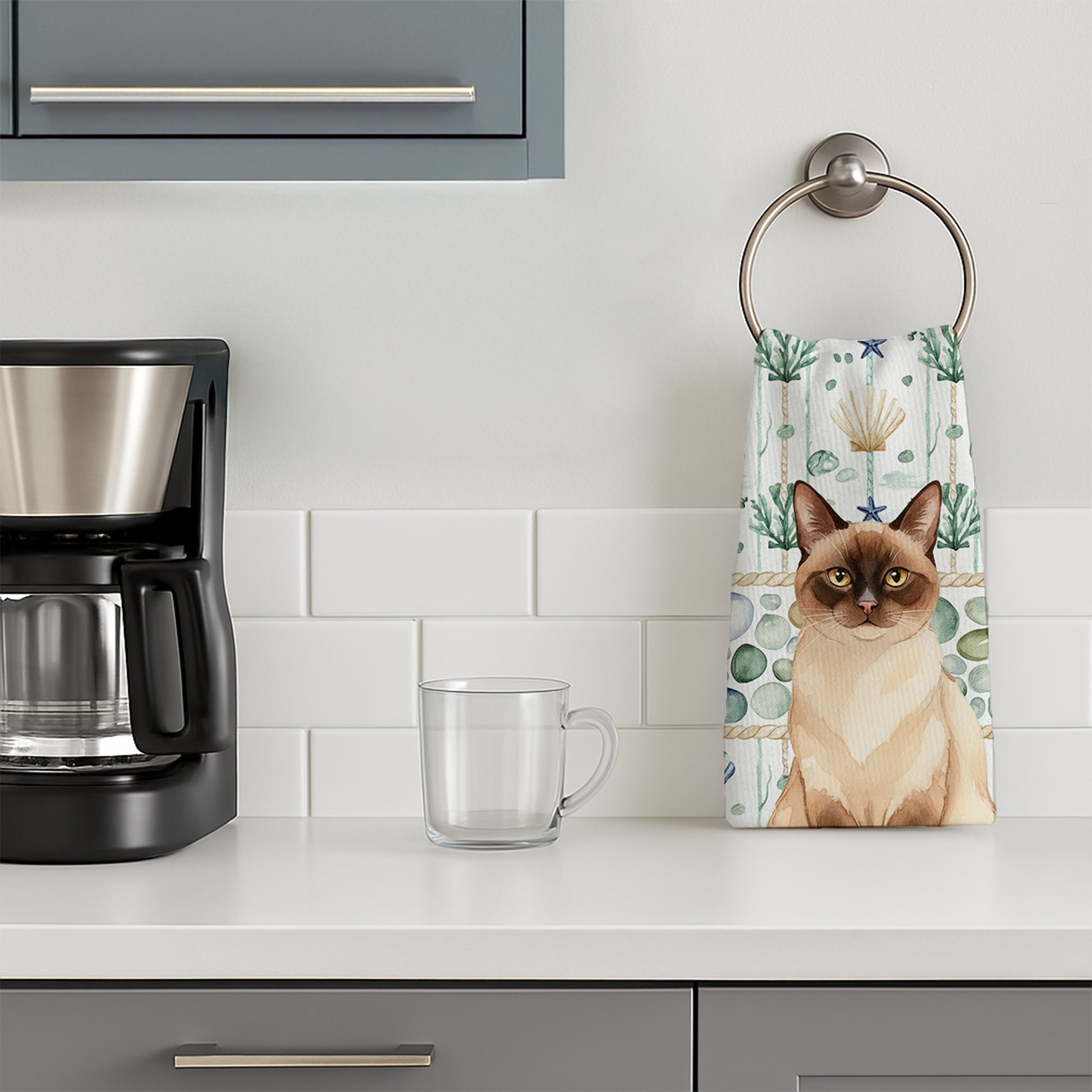 Kitchen Towel featuring breed specific Chocolate Point artwork. Bring cozy everyday charm to your sink or powder room with a plush velour towel featuring original watercolor artwork. The front is a soft, color-rich minky polyester that polishes glassware to a brilliant shine; the back is 100% white cotton terry loop for quick absorbency on hands, dishes, and counters. Artwork is dyed into the fibers for lasting color that won’t crack or peel. Finished edges keep the shape wash after wash. Size: 15" x 25". Machine wash; tumble dry low. Designed and printed in the USA.
