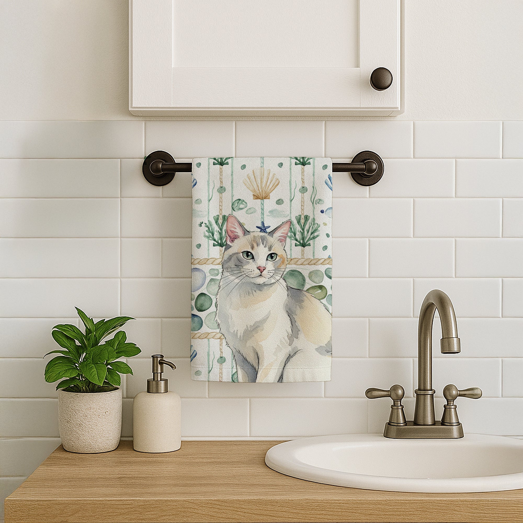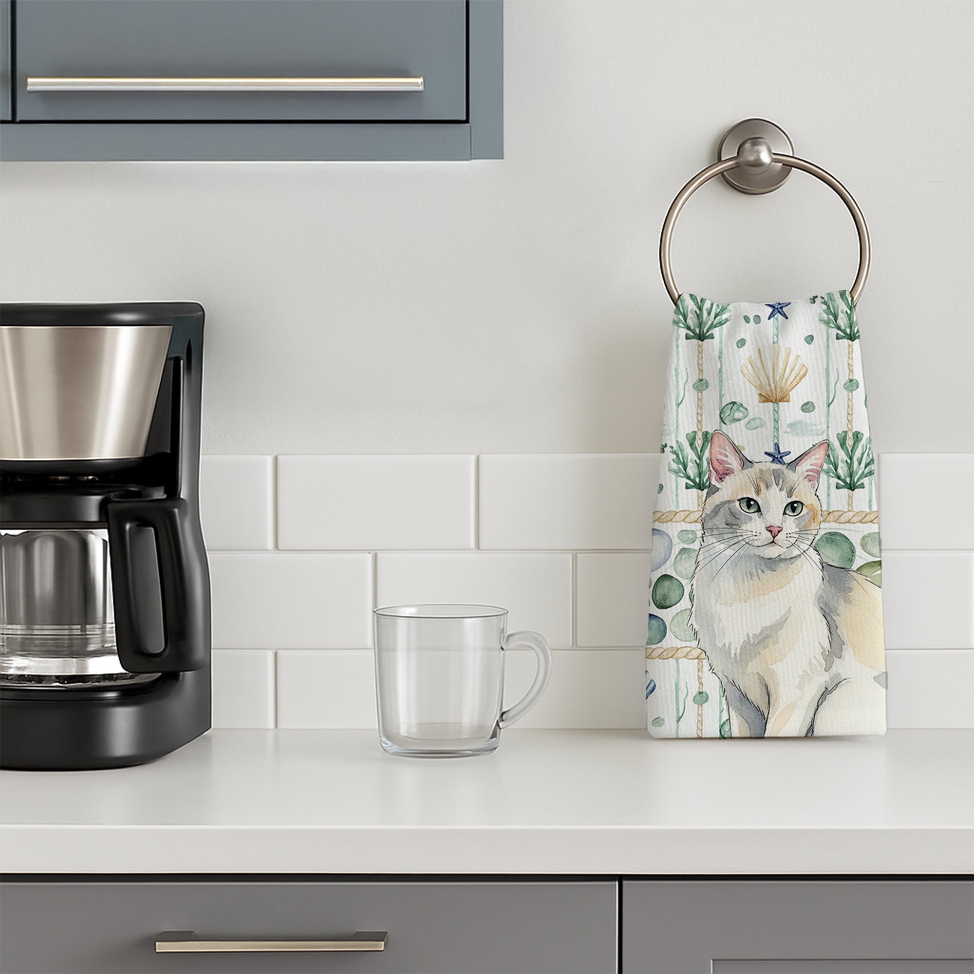 Kitchen Towel featuring breed specific Dilute Calico artwork. Bring cozy everyday charm to your sink or powder room with a plush velour towel featuring original watercolor artwork. The front is a soft, color-rich minky polyester that polishes glassware to a brilliant shine; the back is 100% white cotton terry loop for quick absorbency on hands, dishes, and counters. Artwork is dyed into the fibers for lasting color that won’t crack or peel. Finished edges keep the shape wash after wash. Size: 15" x 25". Machine wash; tumble dry low. Designed and printed in the USA.