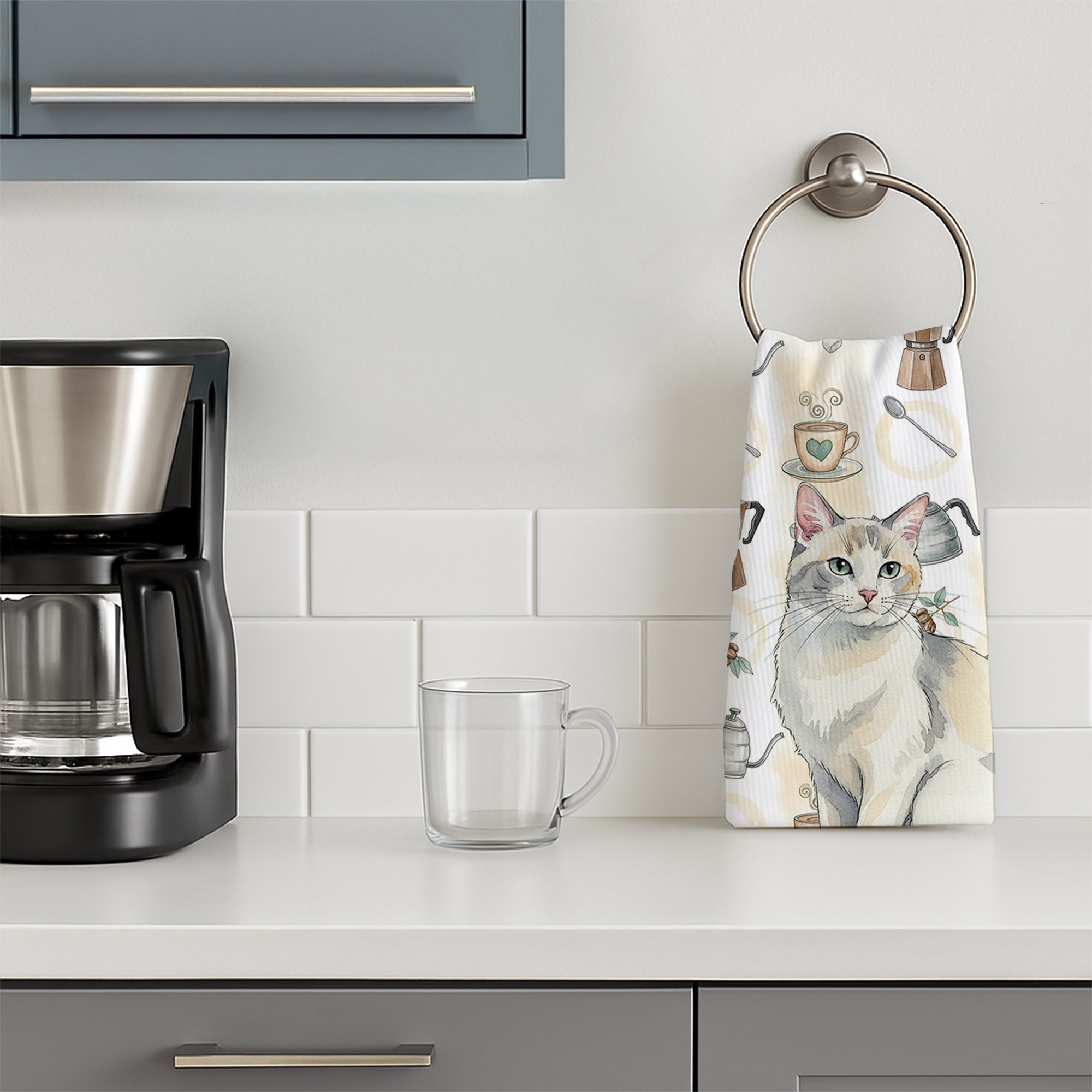 Kitchen Towel featuring breed specific Dilute Calico artwork. Celebrate Christmas with this Christmas Kitchen Towel. Bring cozy everyday charm to your sink or powder room with a plush velour towel featuring original watercolor artwork. The front is a soft, color-rich minky polyester that polishes glassware to a brilliant shine; the back is 100% white cotton terry loop for quick absorbency on hands, dishes, and counters. Artwork is dyed into the fibers for lasting color that won’t crack or peel. Finished edges keep the shape wash after wash. Size: 15" x 25". Machine wash; tumble dry low. Designed and printed in the USA.