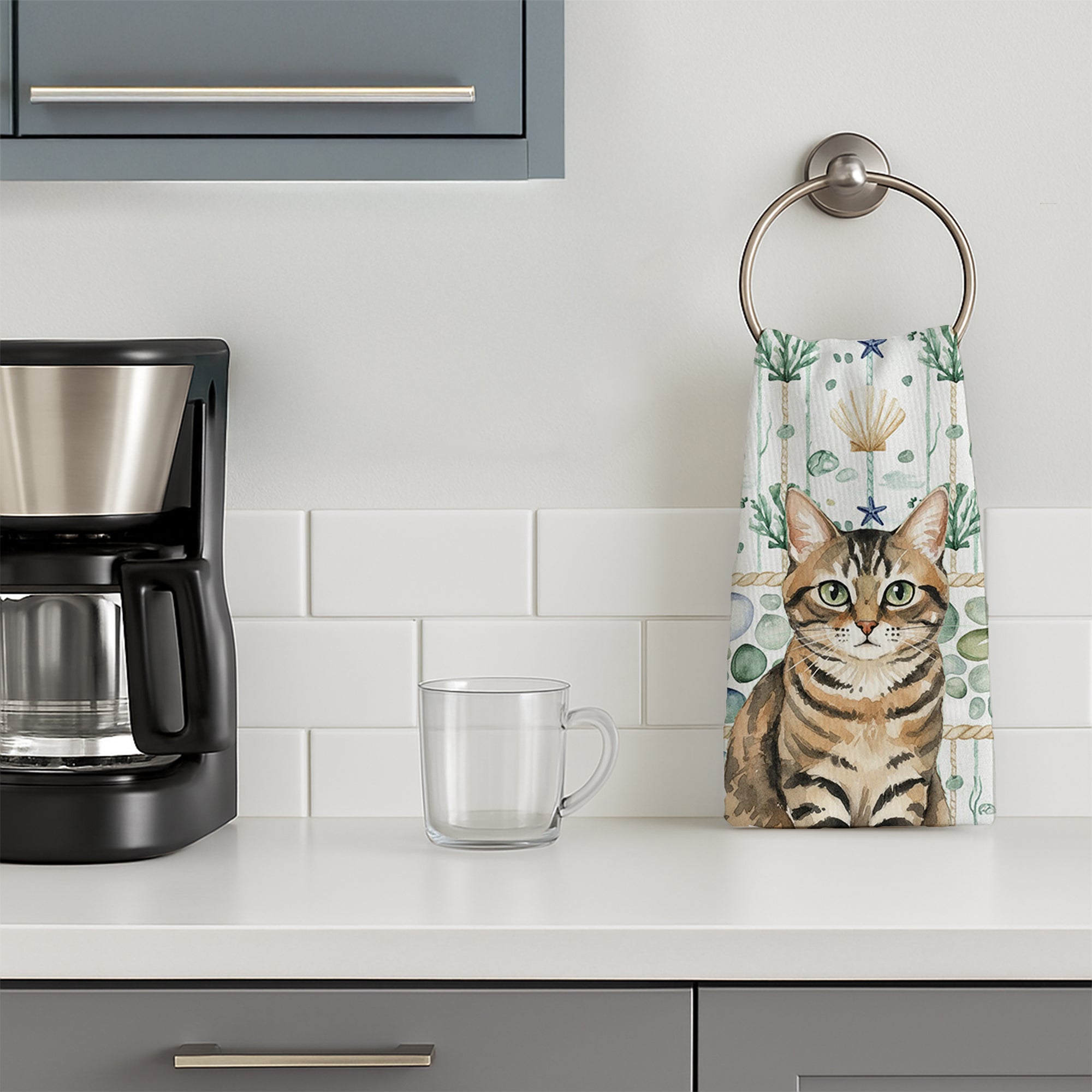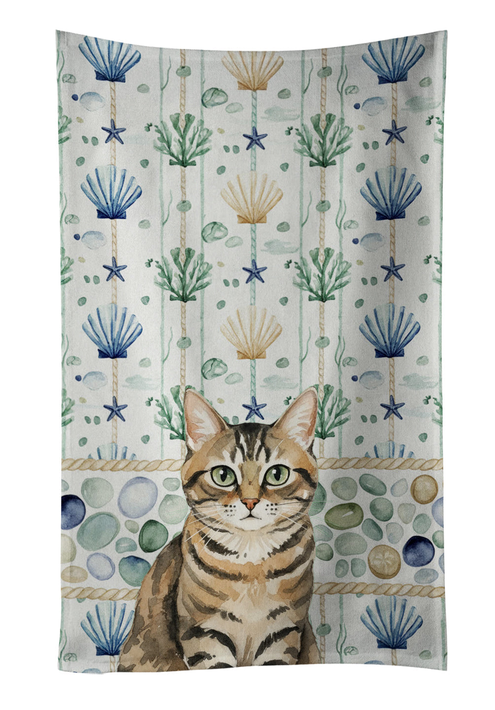 Kitchen Towel featuring breed specific Mackerel Tabby Brown artwork. Bring cozy everyday charm to your sink or powder room with a plush velour towel featuring original watercolor artwork. The front is a soft, color-rich minky polyester that polishes glassware to a brilliant shine; the back is 100% white cotton terry loop for quick absorbency on hands, dishes, and counters. Artwork is dyed into the fibers for lasting color that won’t crack or peel. Finished edges keep the shape wash after wash. Size: 15" x 25". Machine wash; tumble dry low. Designed and printed in the USA.
