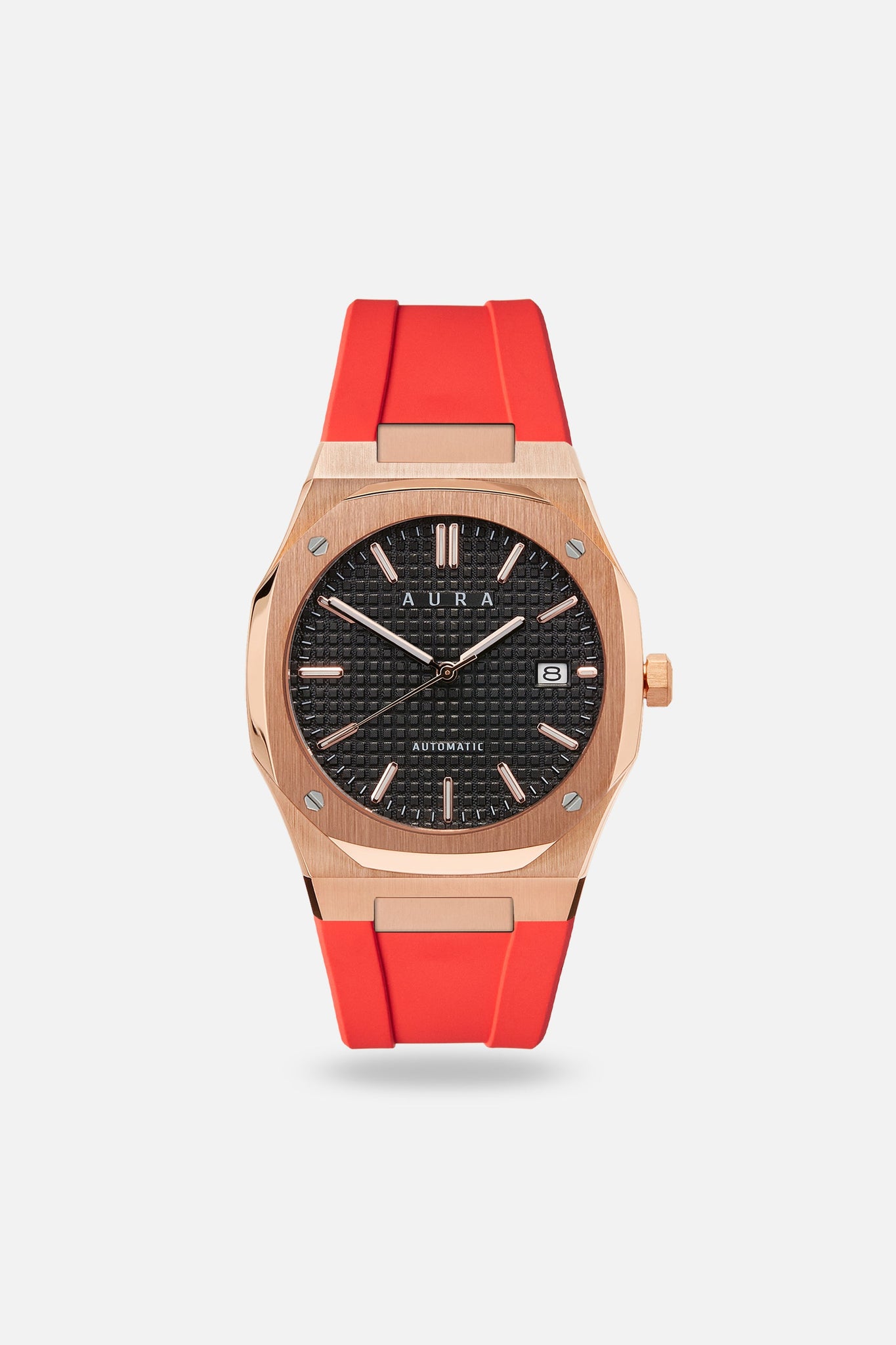 Aura FKM Rubber Straps are made from the highest quality FKM material for maximum comfort and durability, and feature stainless steel butterfly clasps. Each FKM Strap is compatible with all AURA Automatic Watches such as Skeleton, Date, and 1023 watch models. Personalize your collection, express your individuality, and show your AURA with these bold, fashionable, and functional straps.