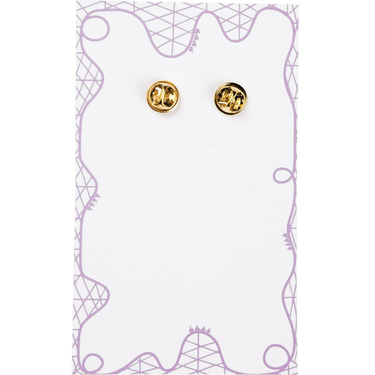 An "Admit One" high-quality hard enamel pin with hand and ticket design and butterfly clip closures. Comes packaged on a double-sided, thoughtfully-coordinated "I See No Good Reason To Act My Age" card with reverse blank side for a handwritten note.